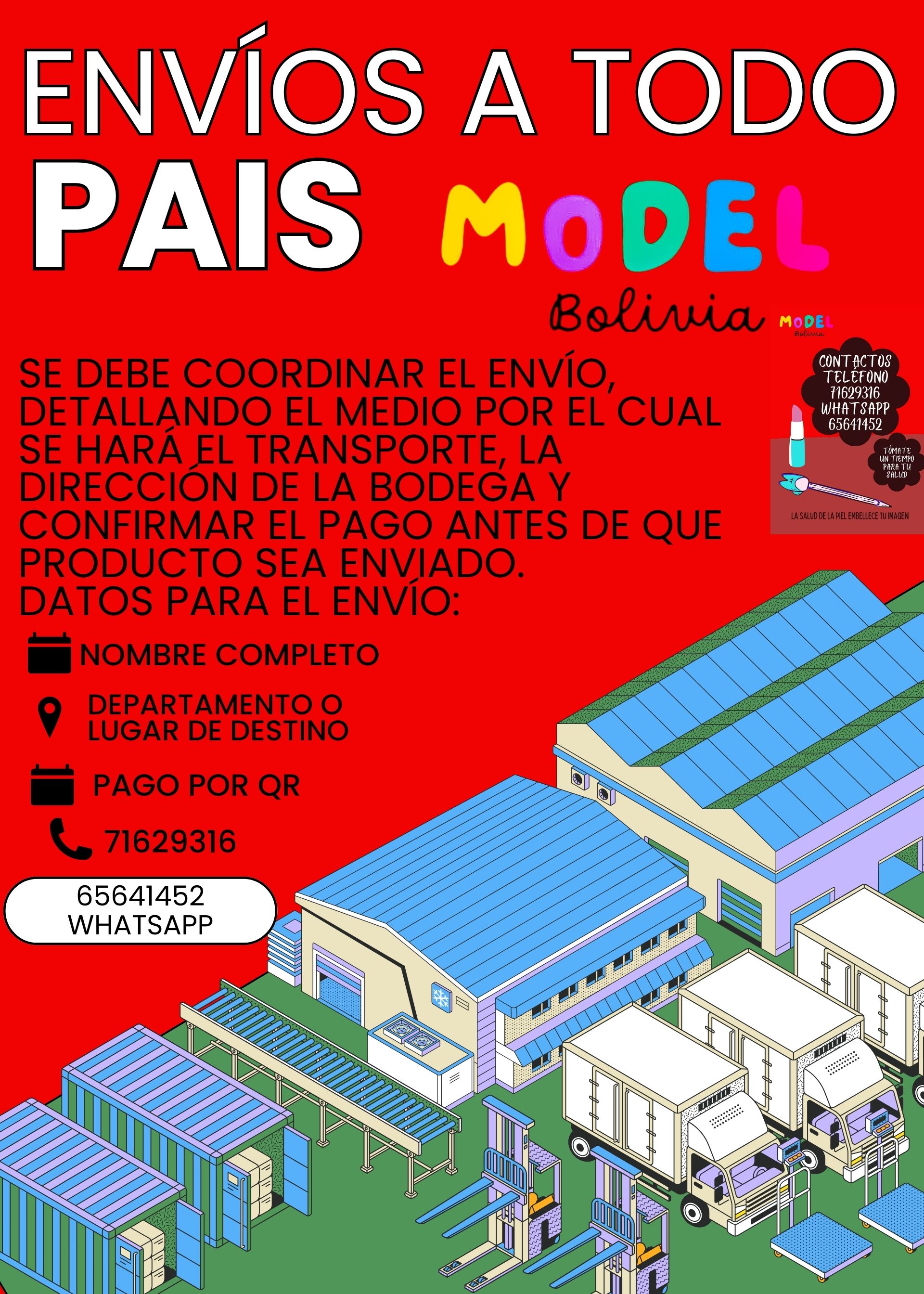 Ahora puedes contactarte con Model Bolivia y Solicitar los diferentes Servicios y Productos que ofrecemos a nuestros clientes con la calidez necesaria